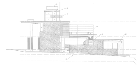 The city building department allowed rebuilding provided that the new structure be built on the existing foundation and conform to the original envelope. Changes had taken place over the years to the site itself: in the 1950’s Silver Lake Reservoir had been filled in front of the house, and the water was now about 600 feet away, not 100 feet as before; automobile traffic, with its acoustic and air pollution, had increased along Silver Lake Boulevard; and the dense vegetation on the west side of the house which had provided solar protection and privacy had burned, in contrast to the planting of the south patio which had become quite lush over the years.