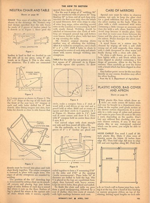 An excerpt on how you could handcraft your own Boomerang Chair at home via Women's Day Magazine 1947