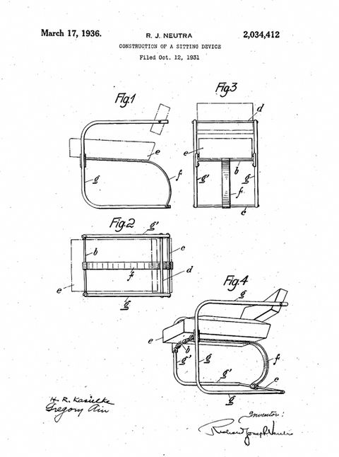 The Cantilever Chair was originally designed in 1929 for Lovell Health House. The distinctive steel spring ensures that seat mobility is separated from the backrest – a definite ergonomic advantage. Neutra filed a patent application for his Cantilever Chair.